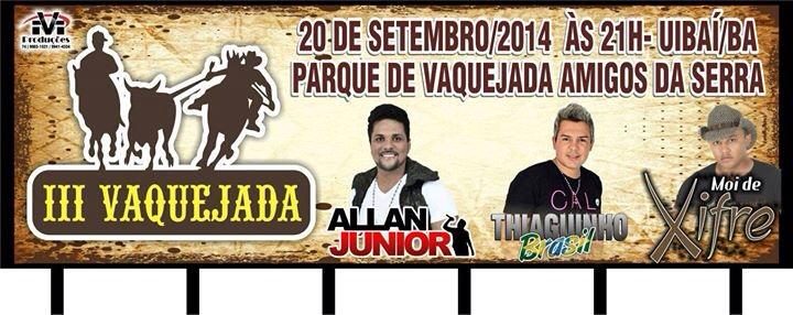 Haras Lua Cheia apresentam:III Vaquejada Parque Amigos da Serra 20 e 21 de setembro 2014 em Uibaí-Ba.R$ 5.000,00 em prêmios. Bolão para iniciantes.Festa em circuito fechado...